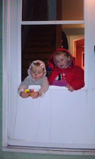 we had a blast trick or treating!! and then had even more fun passing out candy! they both ran screaming if a kid came to the door wearing a mask. malloy told me her favorite thing about tonight was 'passing out candy to nobody who was scary". after trick or treating, we watched one halloween show and then went to bed!!