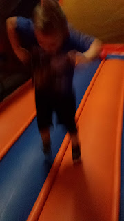 we stopped home quick and then went to leaps n bounce for some bouncing and sliding! we were there for a few hours. rex discovered that he loves the big slide now. they must have climbed and slid down it about 50 times in a row! needless to say. they both took a good nap!!! when rex woke up, he was holding his belly and crying saying it hurt. he hadn't had any fruit and it caught up to him. he took a warm bath and that seemed to help. we went to brewpub for dinner but it was later than we wanted and the kids were tired and distracted. we quickly sang to rex when we got home and then it was time for bed!!!
