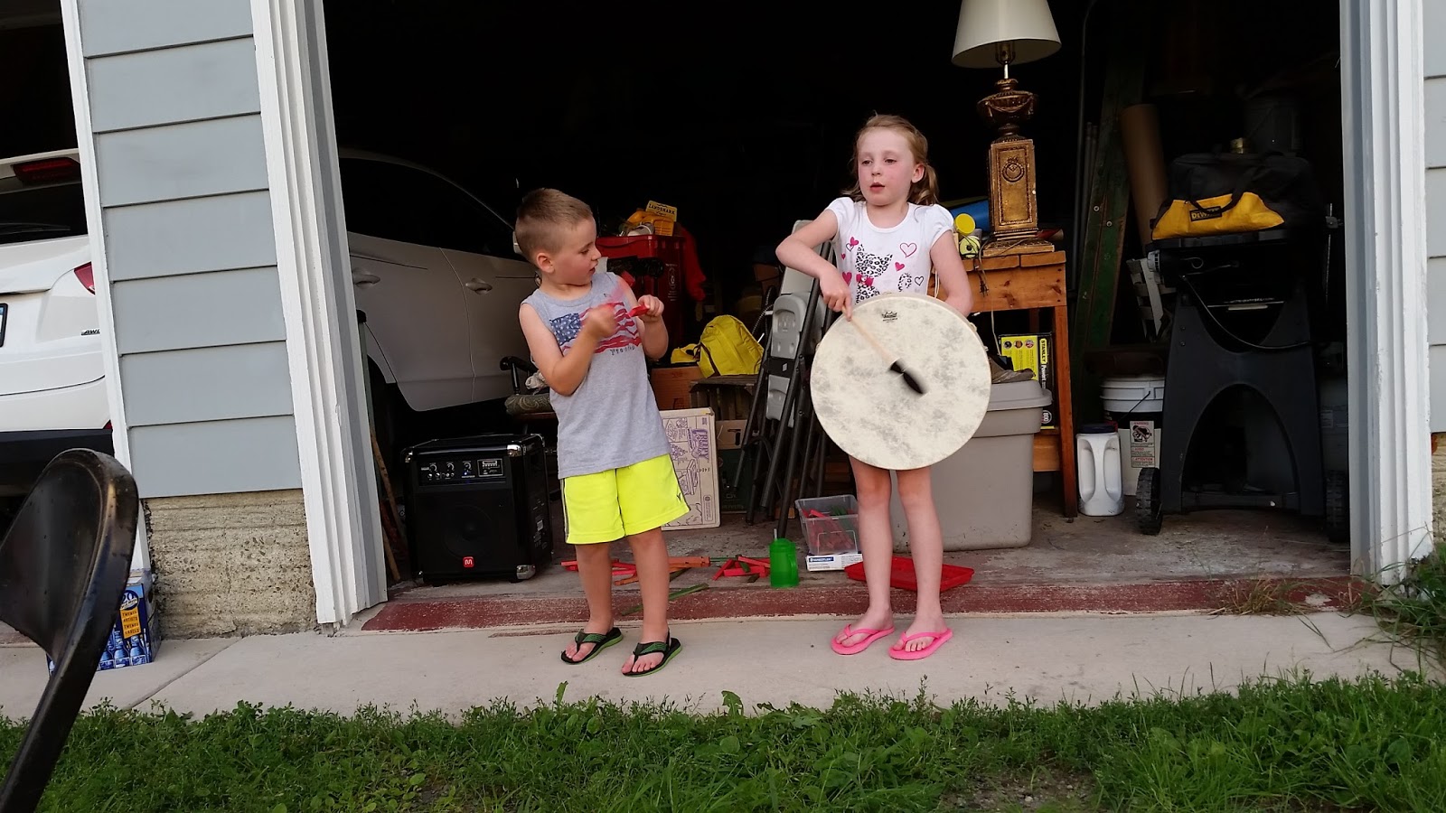 it was a blue moon, so we had a blue moon fire at grandma val and grandpa don's. we had hot dogs and pies and smores, then sang some songs and played instruments - grandma's drum, some blocks and paper towel roll! it was a fun night!!