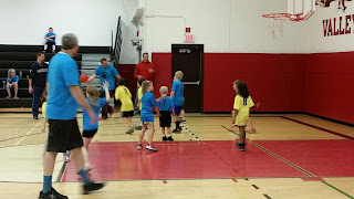 malloy finished with swim and we got her on rex's basketball team! she was thrilled to go to her first practice and was so enthusiastic about everything she learned! she loves to just dribble the basketball during her free time. she did great at her first game, too! rex was out because he had a fever and wasn't feeling well.